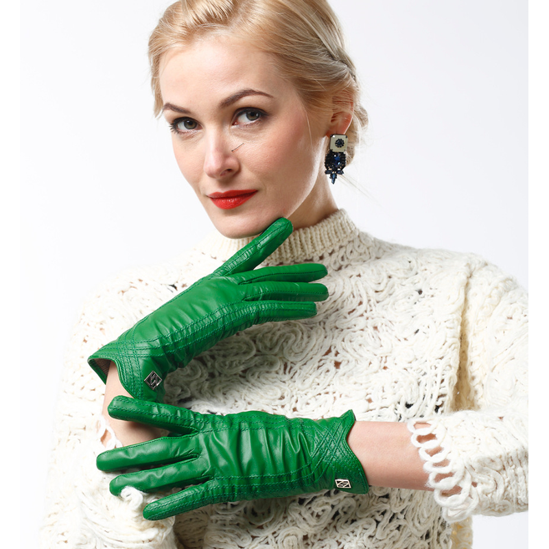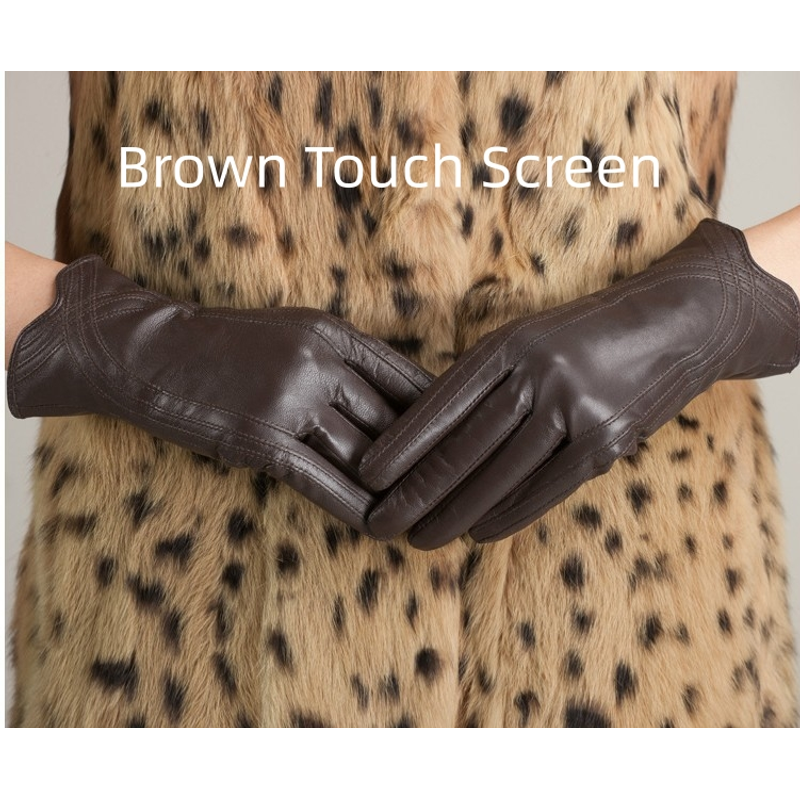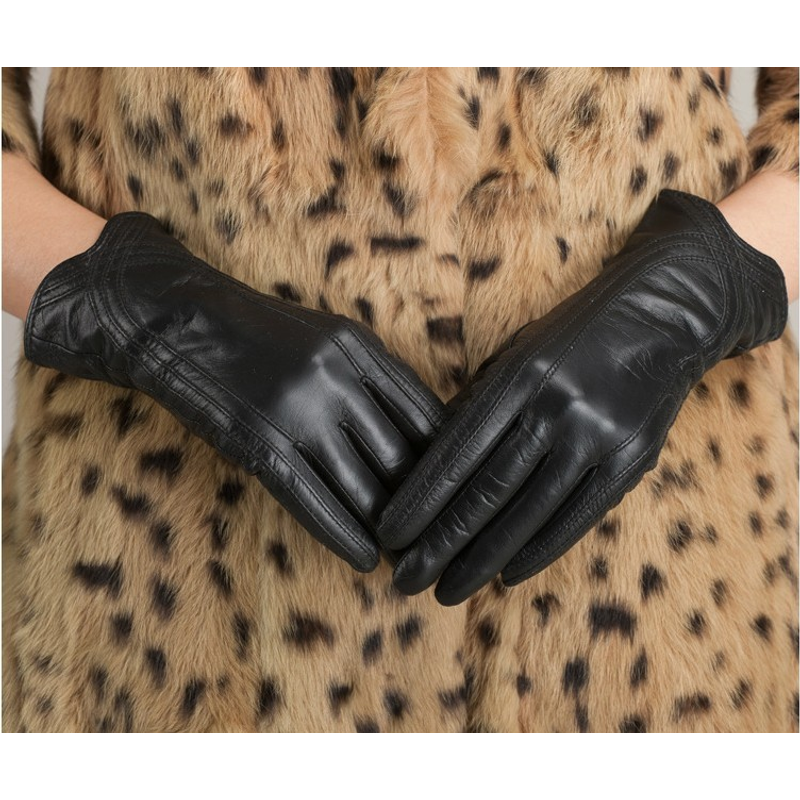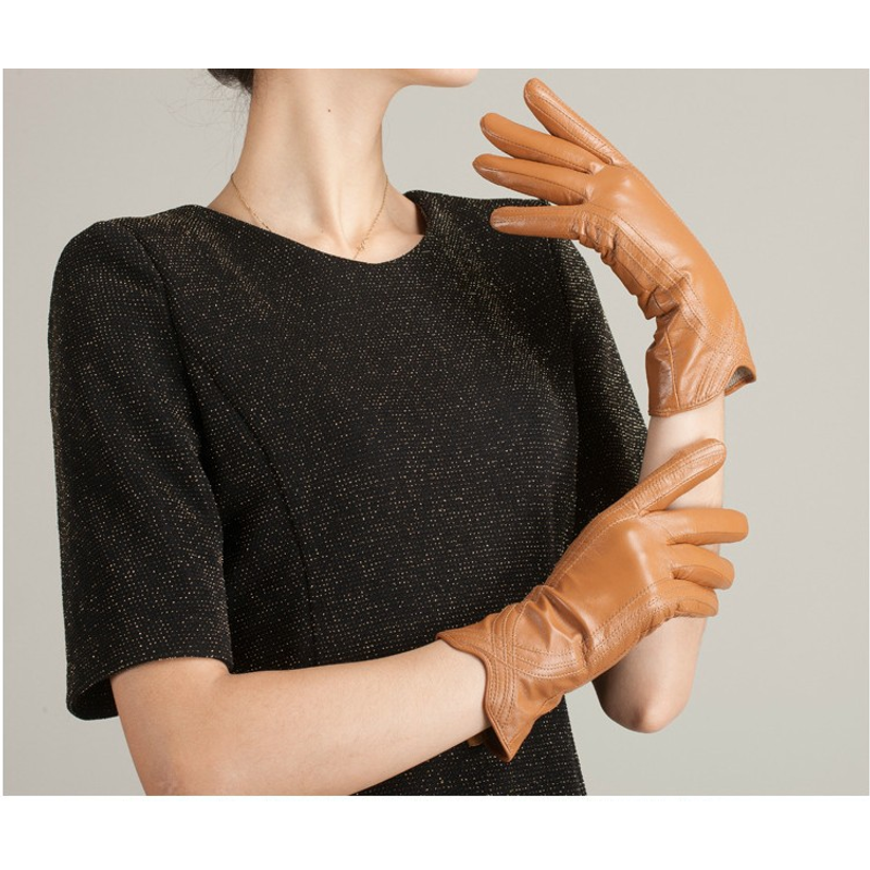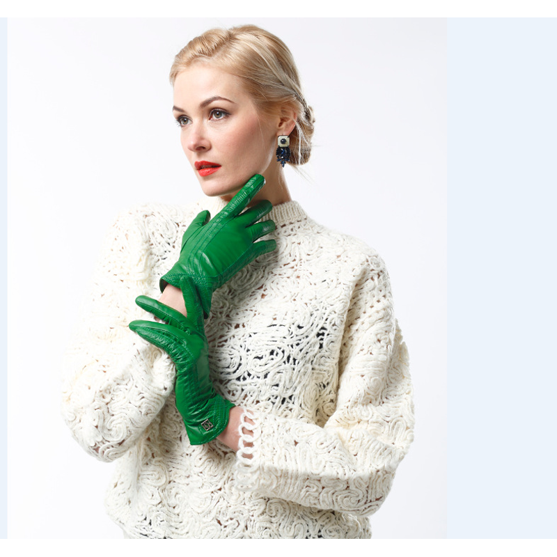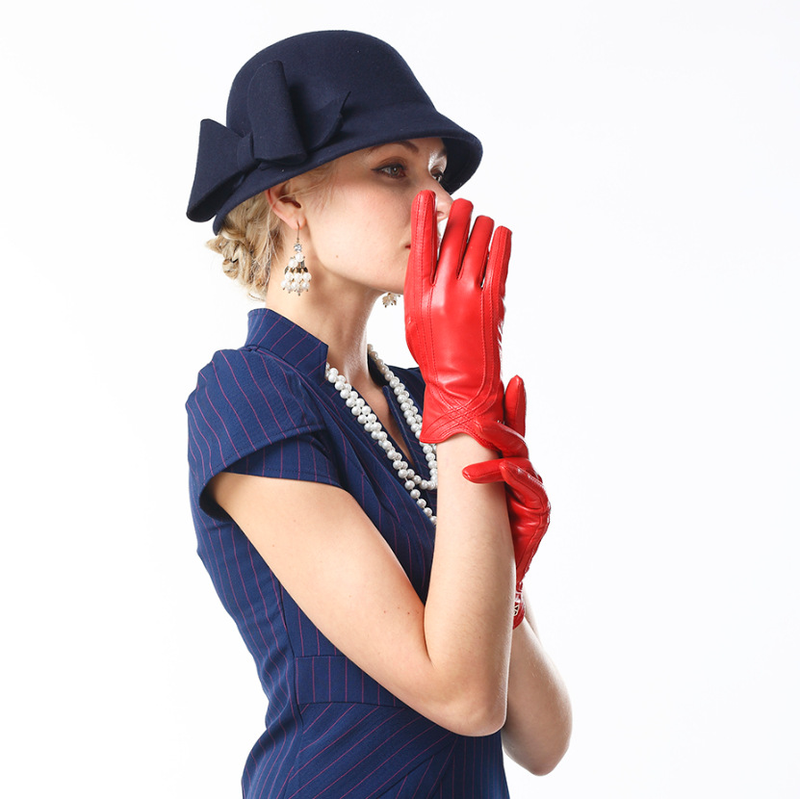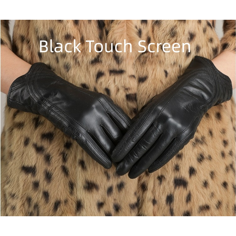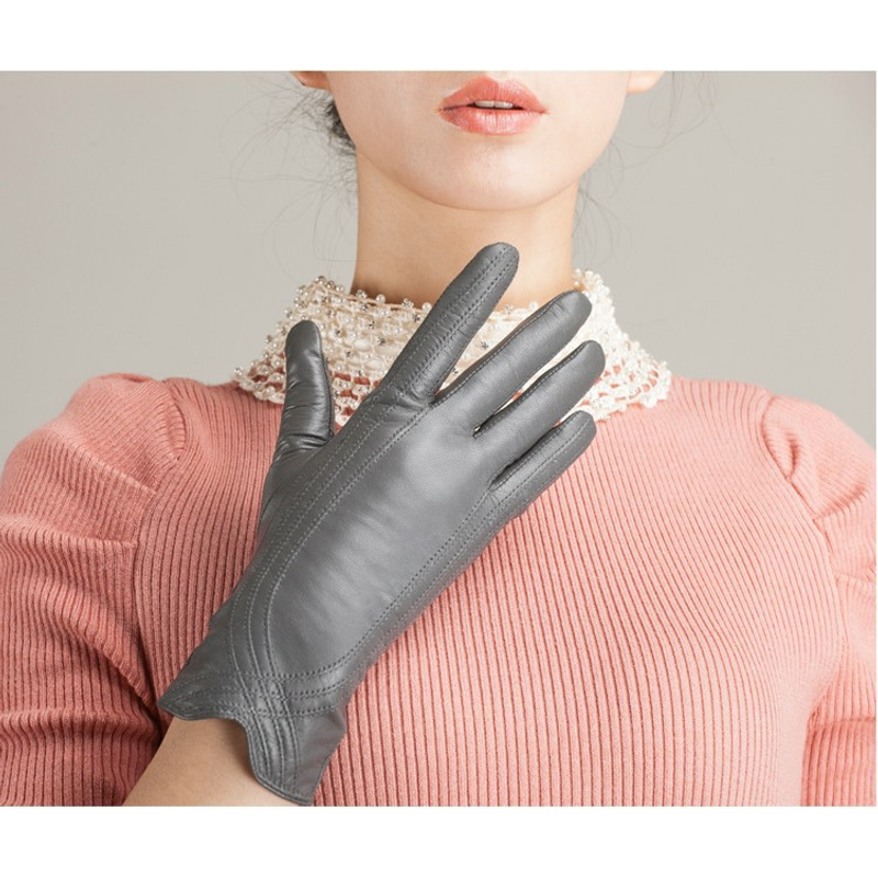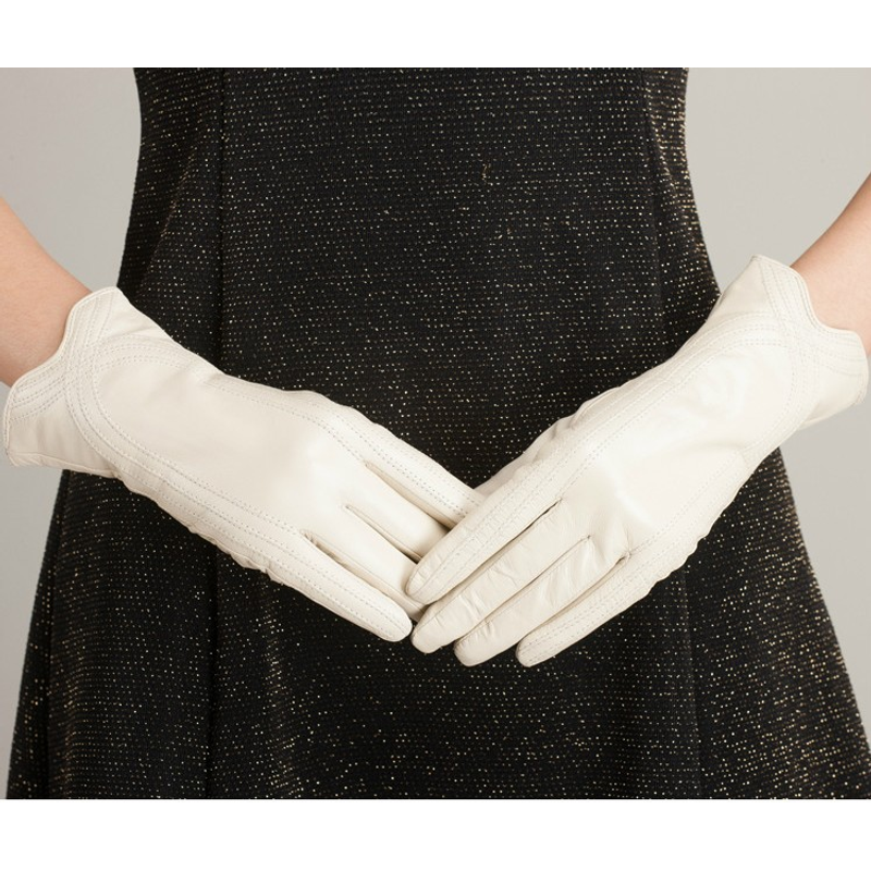 Women's Fashion Winter Warm Gloves Real Lamb Leather Handmade Curve Sheepskin Gloves White M