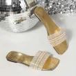 Women's Flat Bottom Sandals 2025 Summer New Style Beaded Rhinestone Shoes Womens Outdoor Fashion Slippers