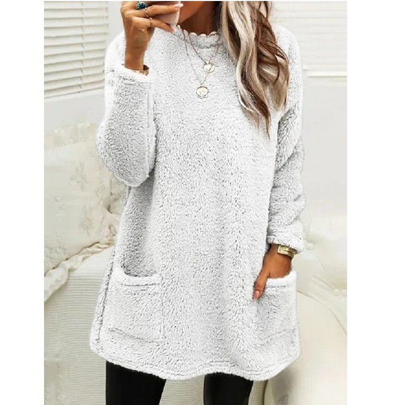 Women's Fleece Pullover Long Sweater With Pockets Winter Warm Thinken Sweatershirt Casual Long Sleeve Plush Tops Hoodie Coat Streetwear Fall Loose Outfits Hoodie Tops Dark Purple S
