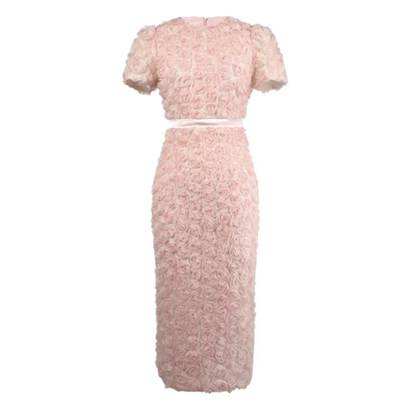 Women's French Style Design Petal Bubble Sleeve Pink Dress for Woman Elegant Midi Robe Female Birthday Party Prom Vestidos