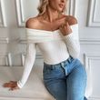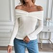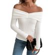 Women's French-style Off-shoulder Long-sleeved Sweater White S