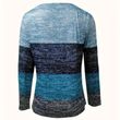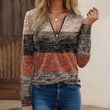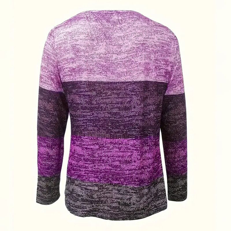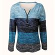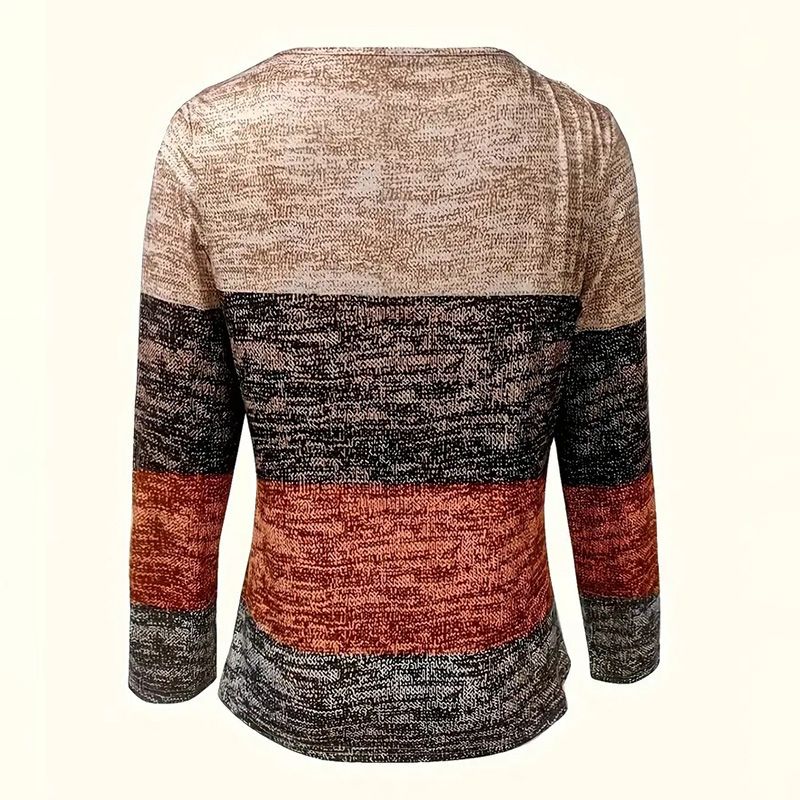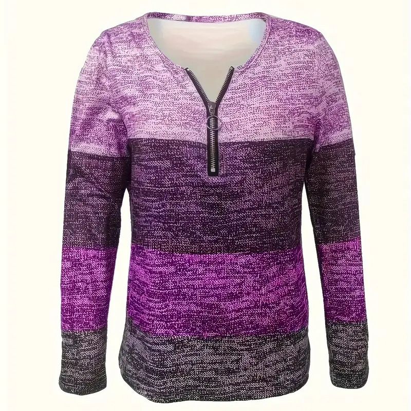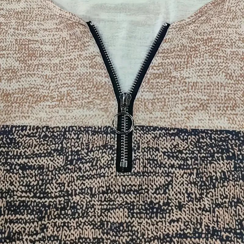 Women's Geometric Color Block V-Neck Zip Detail Long Sleeve T-Shirt - Spring/Fall Casual Slim Fit Top