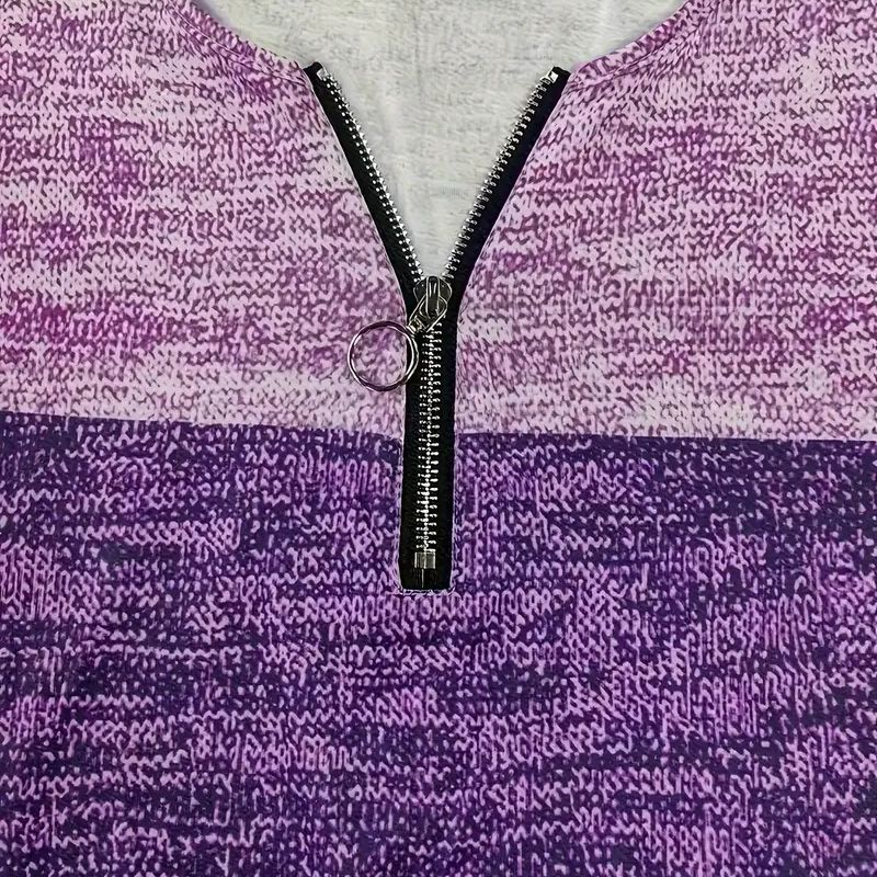 This season's must-have fashion geometric patchwork long-sleeved T-shirt features an innovative color block patchwork design and avant-garde V-neck zipper details, perfectly blending trendiness with practicality. The form-fitting cut combined with 100% high-quality polyester fabric offers a comfortable and close-fitting wearing experience while maintaining a crisp and stylish appearance.