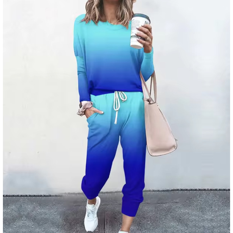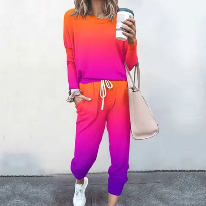 Women's Gradient Color Long Sleeve Casual Suit Style 1 XXXL