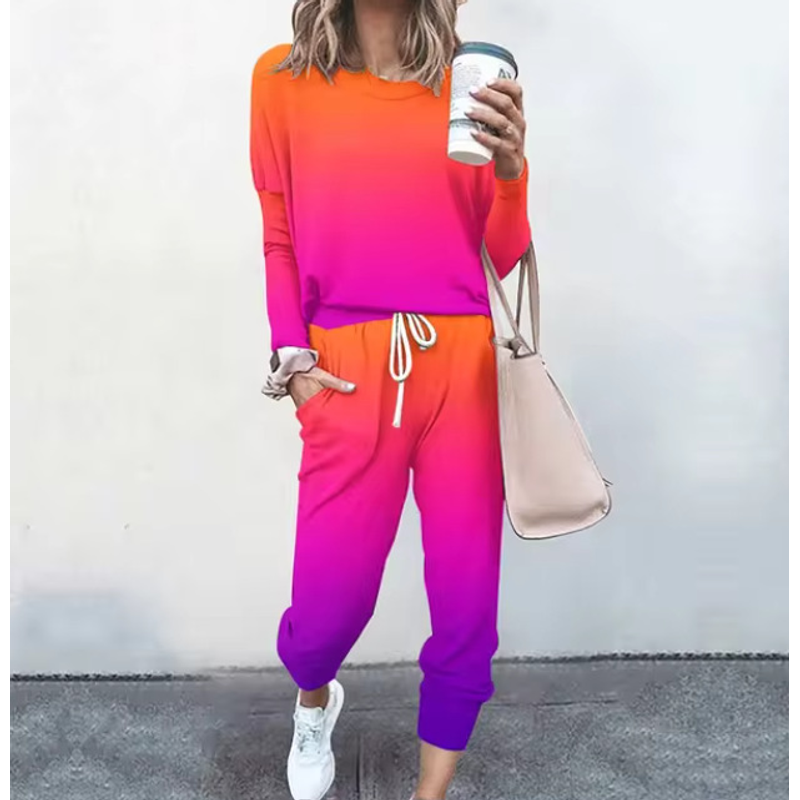 Women's Gradient Color Long Sleeve Casual Suit Style 7 XL