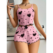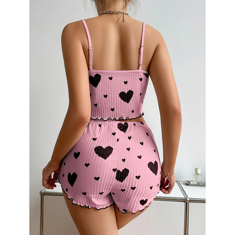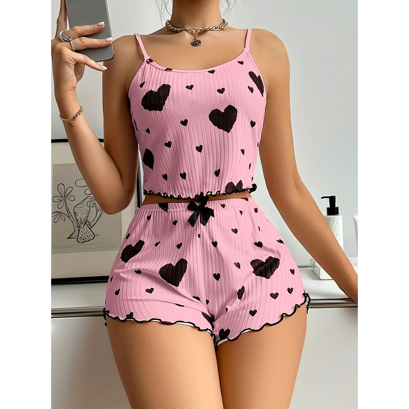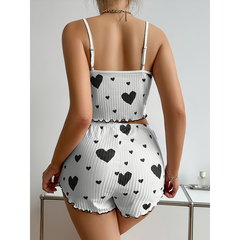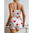 Women's Heart Print Pajama Set 2PCS Soft Ribbed Tank Top and Shorts Lightweight Sleepwear Loungewear S M L