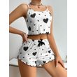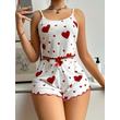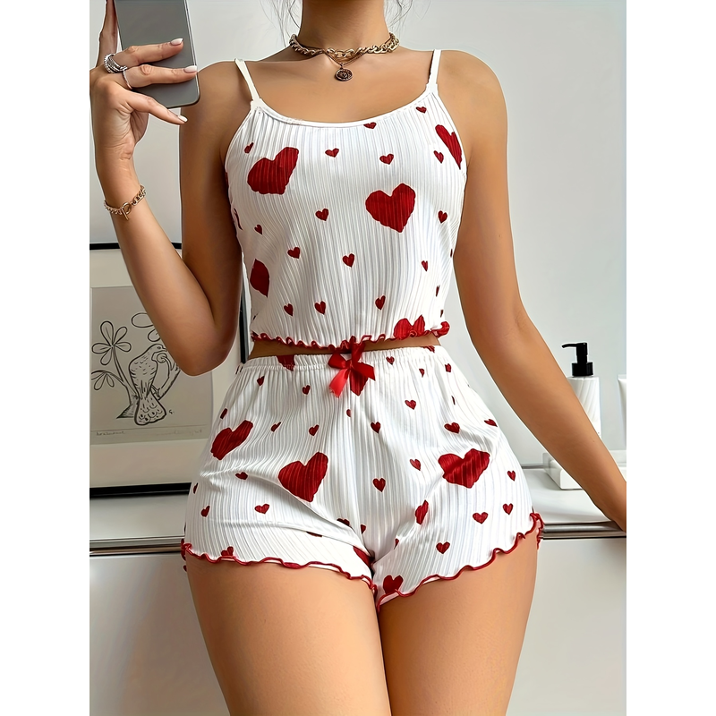Women's Heart Print Pajama Set 2PCS Soft Ribbed Tank Top and Shorts Lightweight Sleepwear Loungewear S M L