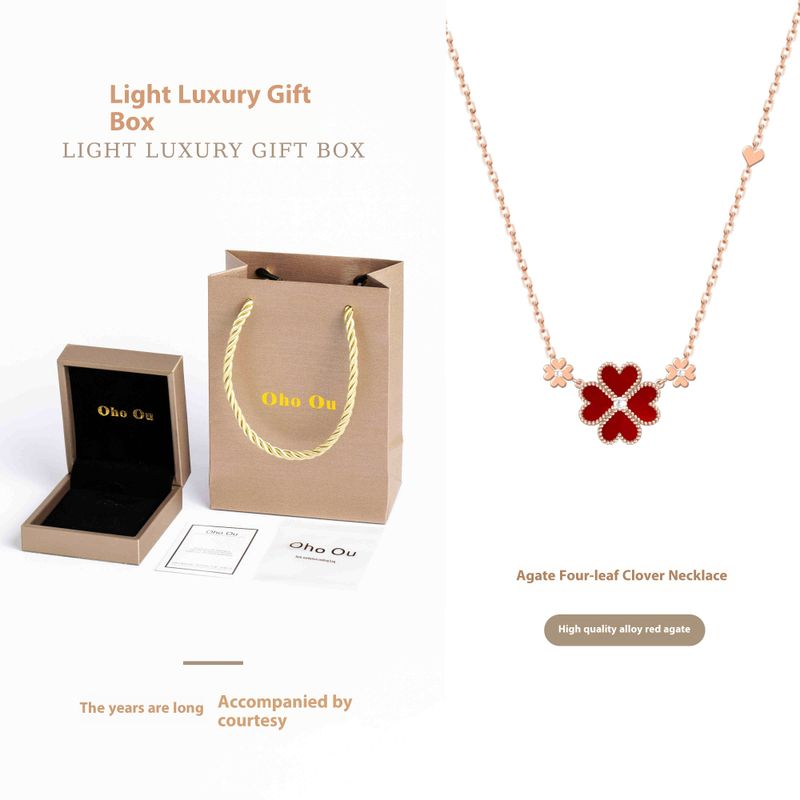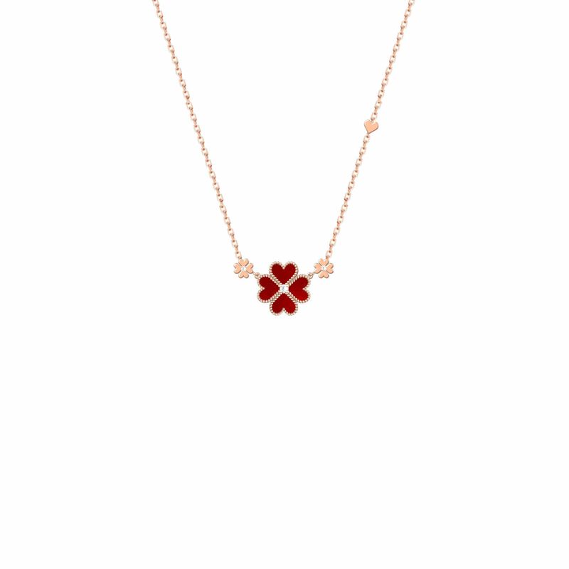 Women's High-grade Light Luxury Minority Red Turquoise Clover Necklace Rose Gold