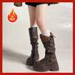 Foldable shaft unlocks two wearing styles: folded to reveal inner details for layered look; unfolded for lazy rider-boot vibe. Metal buckles at the cuff enhance motorcycle style, upgrading from “basic” to “eye-catcher”, standing out in crowds.