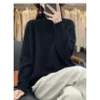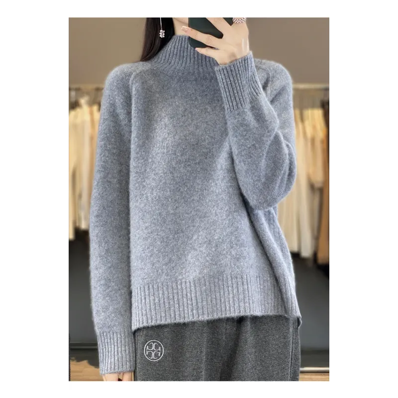 Women's High-Necked Cashmere Sweater 100% Soft Wool Thickened Lazy Raglan Sweater with Slit for Autumn Winter Comfortable Waxy W