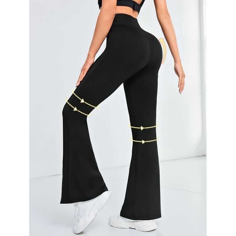 Women's High-waist Flared Yoga Pants Black Butt-lifting Split-tight Leg Pants Stretch Sports Pants For Fitness Running And Every