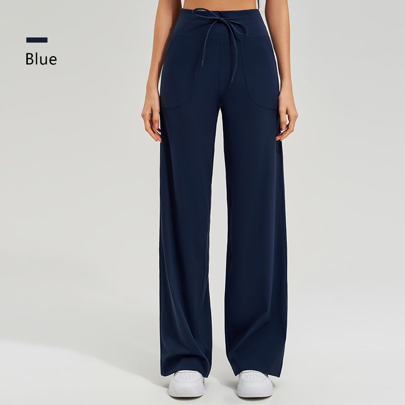 Women's High Waist Yoga Pants Gym Loose Running Yoga Pants Double Side Brushed with Pockets Pants Ties