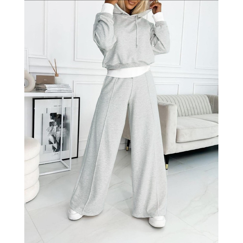 Women's Hoodie Suit Sporty Casual Long-Sleeved Hooded Sweatshirt And Drawstring Pocket Sweatpants Fashion Commuter Trousers Set Outfit Clothing Light Gray S