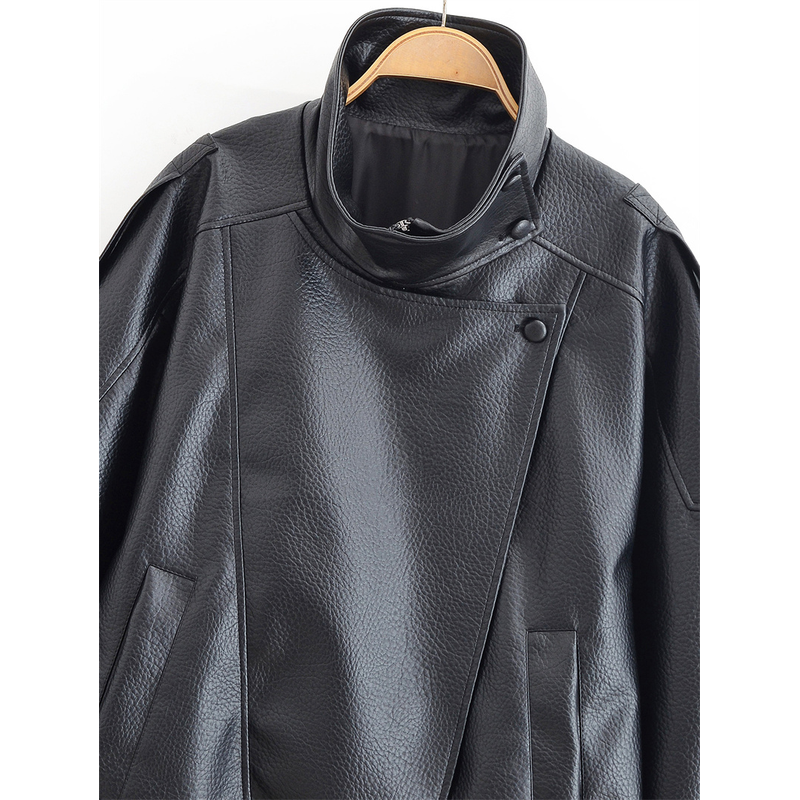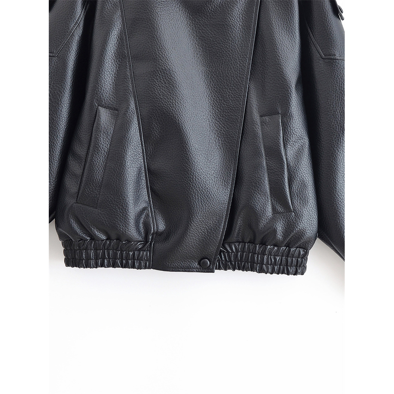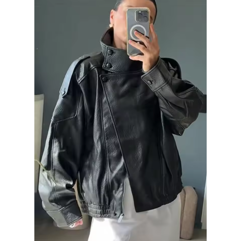 Women's Jacket Fall 2025 New Black Long Sleeve Pebble Faux Leather Jacket Motorcycle Style Personality Fashion