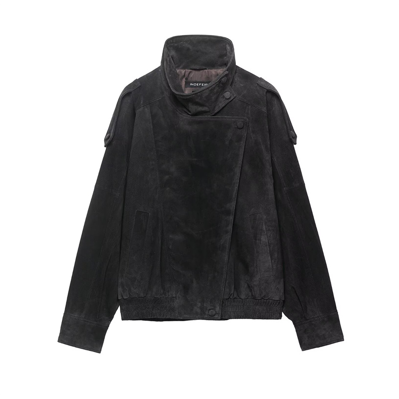 Women's Jacket Fall 2025 New Black Long Sleeve Pebble Faux Leather Jacket Motorcycle Style Personality Fashion