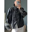 Women's Jacket Fall 2025 New Black Long Sleeve Pebble Faux Leather Jacket Motorcycle Style Personality Fashion