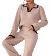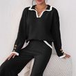 Women's Lapel Color Contrast Patchwork Gold Fastener Decoration Top Khaki L
