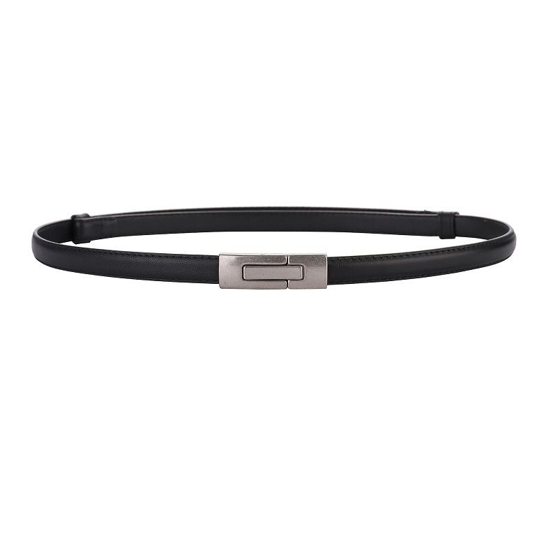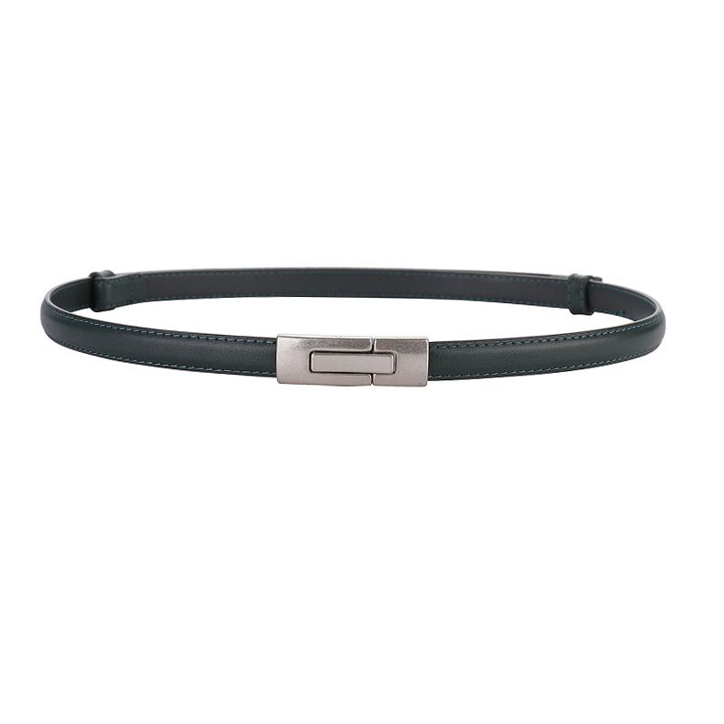 Women's Leather Thin Belt First Layer Cow Leather Button Apricot 96cm
