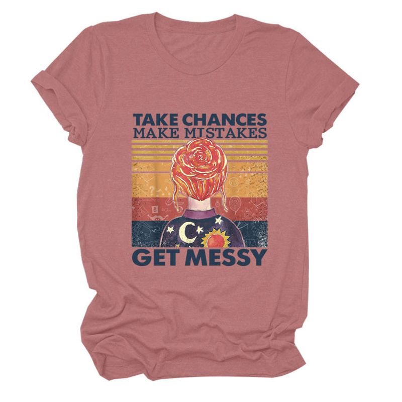 Women's Letter Printing Casual Loose Short Sleeve T-shirt Rose gold 2XL