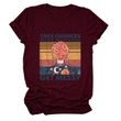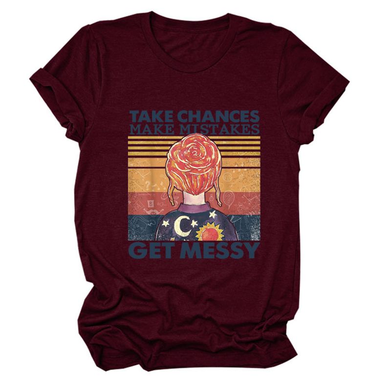 Women's Letter Printing Casual Loose Short Sleeve T-shirt Wine red 2XL
