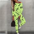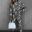 Women's Letter Printing Long Sleeve Casual Suit Brown 2XL