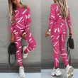 Women's Letter Printing Long Sleeve Casual Suit Purple S
