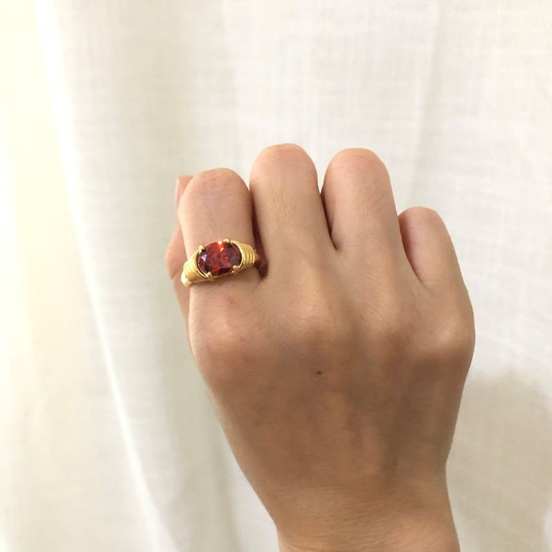 Women's Light Luxury Spiral Titanium Steel Plated 18K Gold Ring Red 8