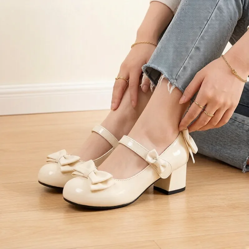 The round toe weakens the "mature feeling" and adds sweet elements, visually "making the foot look smaller"; the double bow decoration on the toe is full of delicacy. Whether paired with dresses (lace dresses, knit dresses) or pants (denim shorts, overalls), it instantly enhances the "girl-next-door charm" of the outfit, attracting attention in daily streetwear or light social scenes.