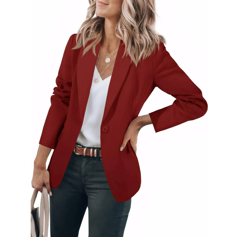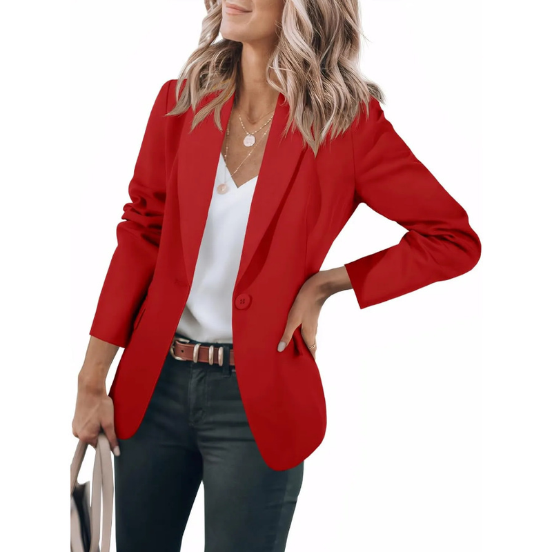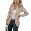 Women's Long Sleeve Solid Color Polo Collar Small Suit Jacket Apricot 3XL