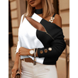 Women's Long-sleeved Chain On Neck Printed Top Black And White XL