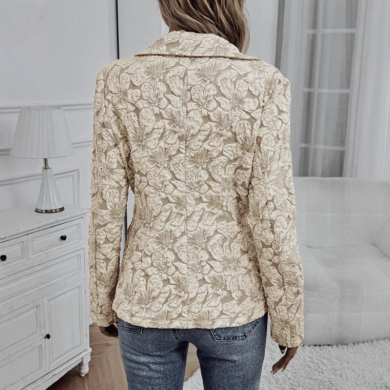 Women's Long-sleeved Single-button Lapel Fashion Casual Jacket With Lining Apricot 2XL