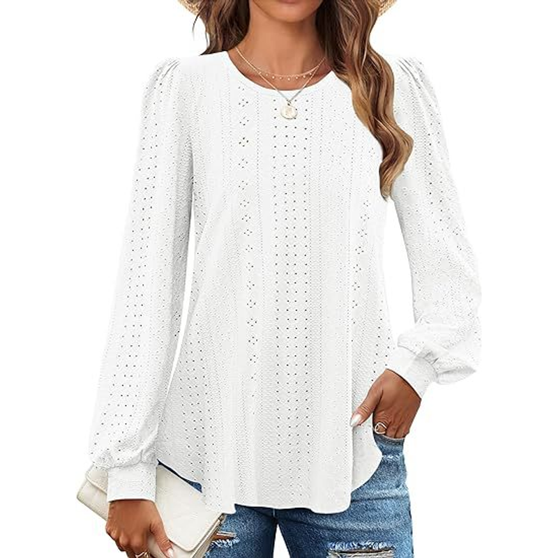 Women's Loose Casual Lantern Sleeve Long Sleeve T-shirt White S