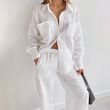 Women's Loose Casual Long Sleeves Shirt High Waist Straight Pants Suit White L