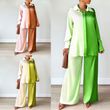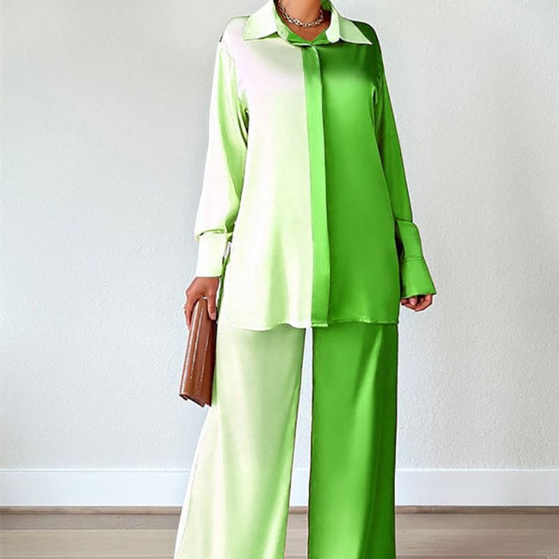 Women's Loose Home And Outdoor Wear Colorblock Two Piece Set Green L