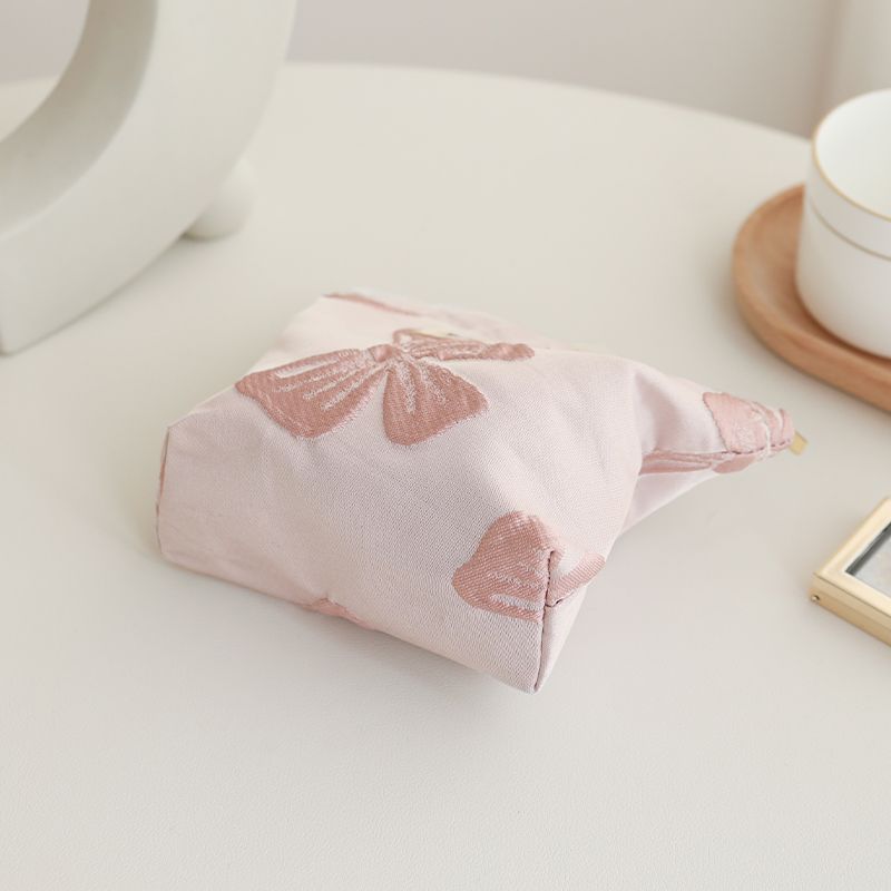 Women's Makeup Bag Small Pink Bow Makeup Lipstick Headphones Storage Bag Portable Coin Purse Commuter Card Holder Ins Style