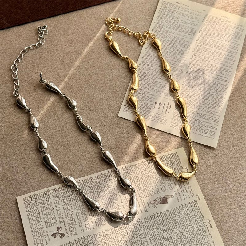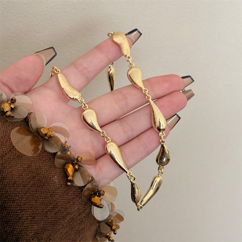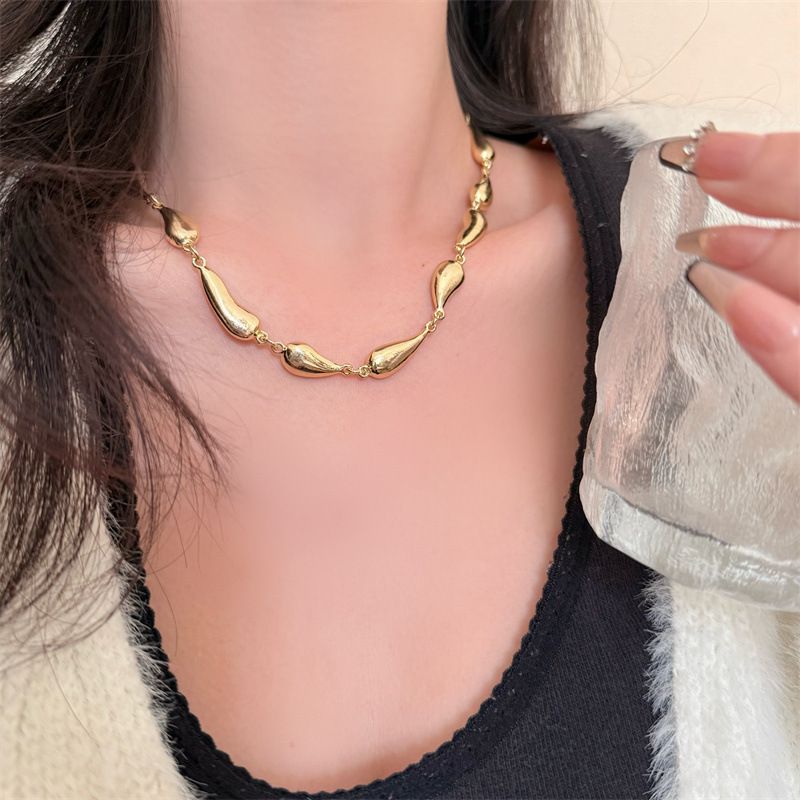 Women's Metal Water Drop Stitching Necklace Gold Plated With Real Gold