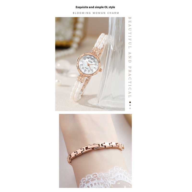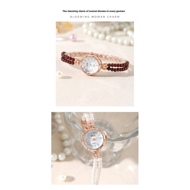 Women's Niche Creative And Slightly Luxury Pearls Strap Watch Loose Spacer Bead White Chain