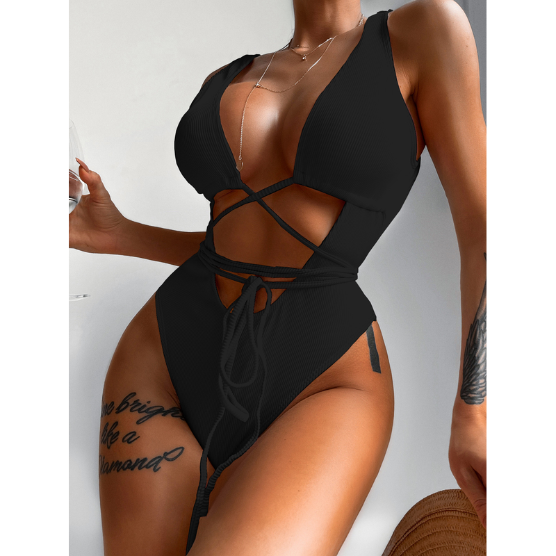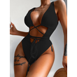Women's One-piece Bikini Solid Color Hollow Straps Black S