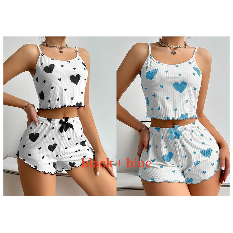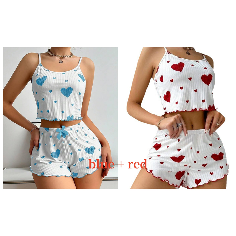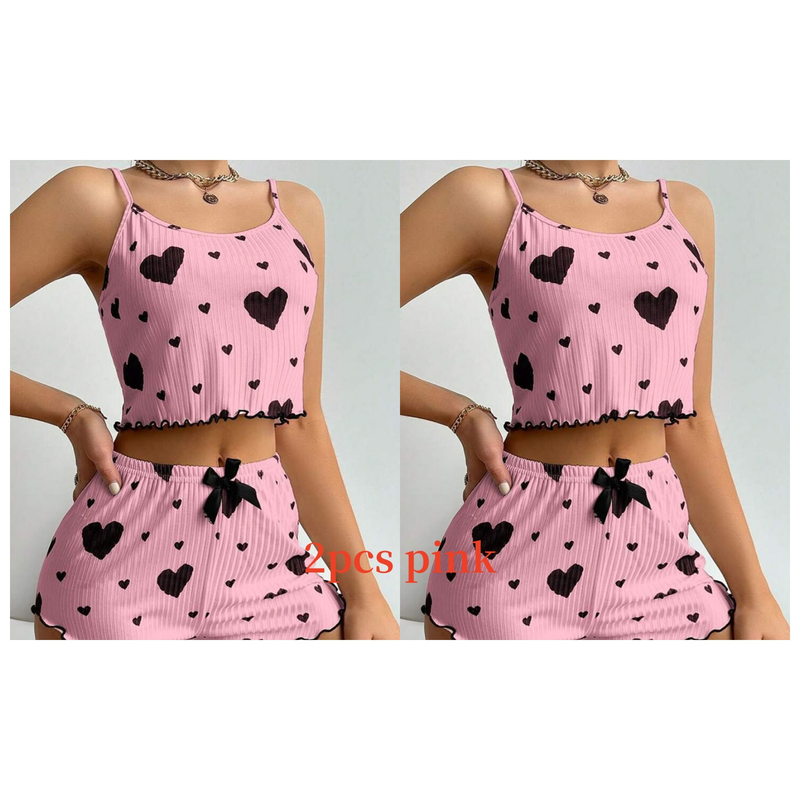 Women's Pajamas Set Sleepwear 2 PCS Short Tank Tops And Shorts S M L White Ventilate Soft Casual Love Printing