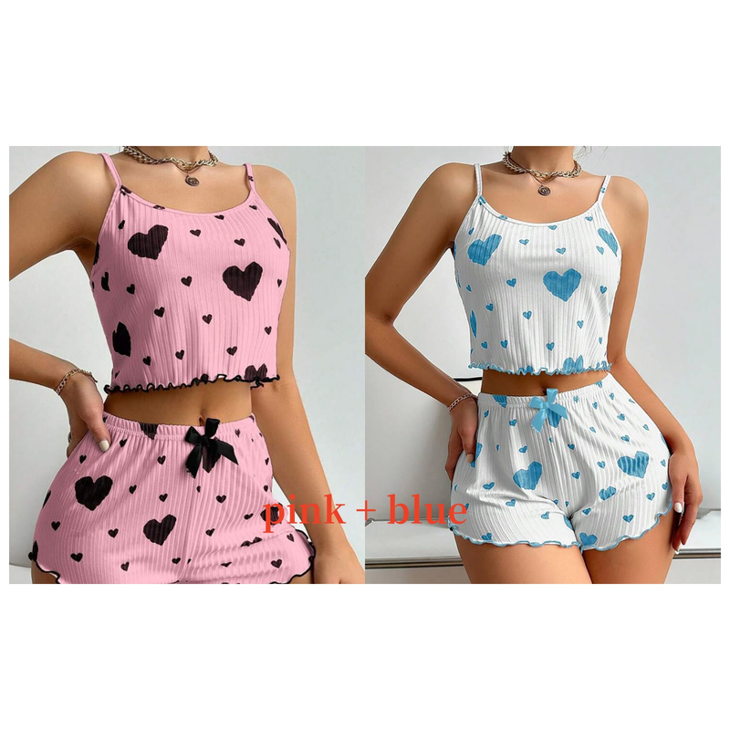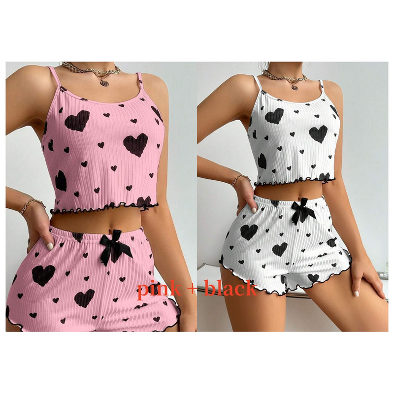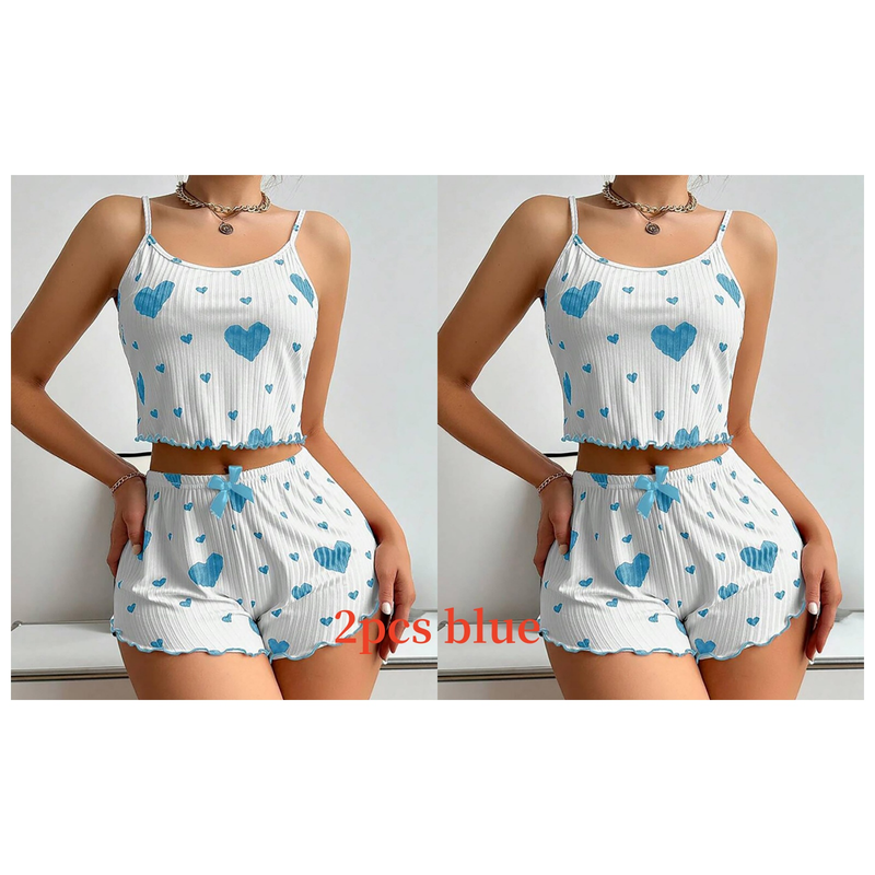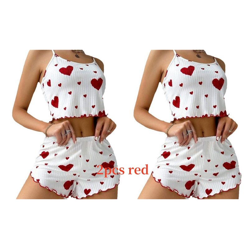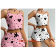 Women's Pajamas Set Sleepwear 2 PCS Short Tank Tops And Shorts S M L White Ventilate Soft Casual Love Printing