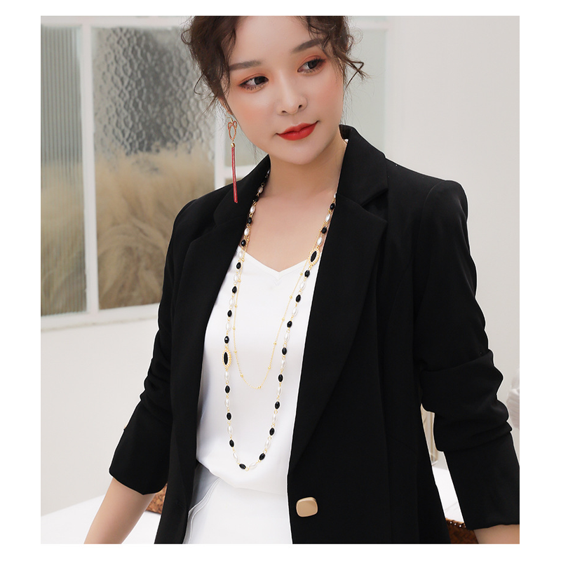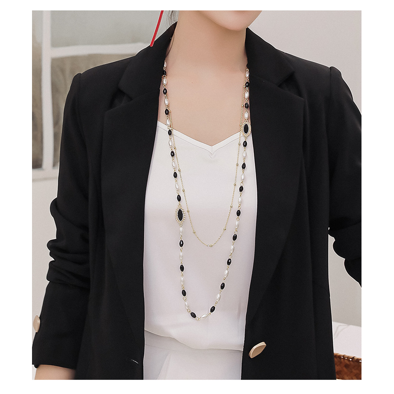 Color: Black egg-shaped white pearl sweater chain