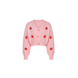 Featuring a pink strawberry embroidery and button front, this cardigan adds a touch of whimsy to any casual outfit.