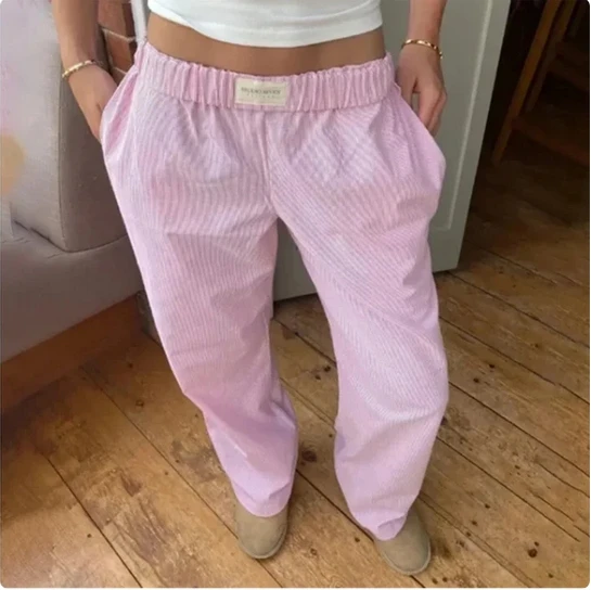 Women's Pink Stripe Elastic Waist Pocket Pants Straight Leg Loose Pants Street Casual Comfortable Summer Y2K Pants