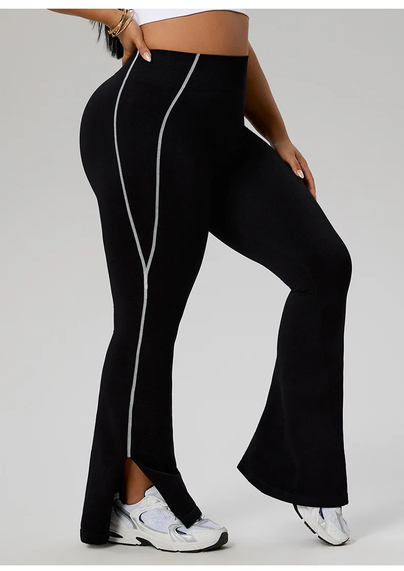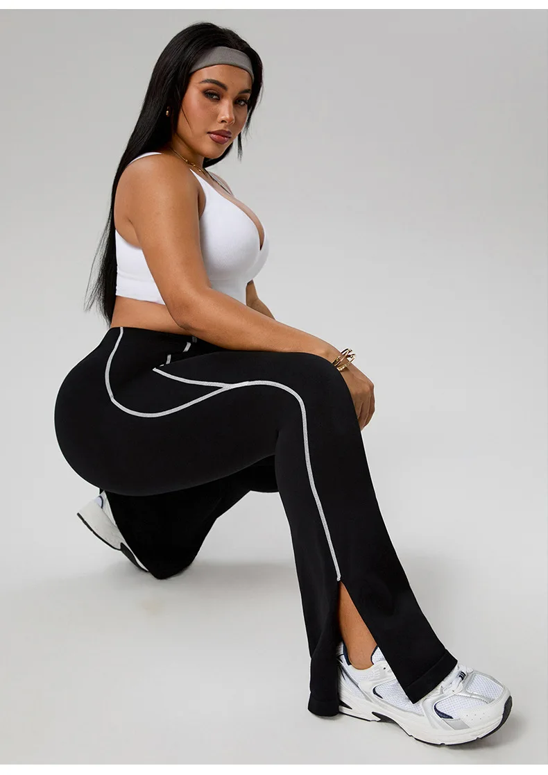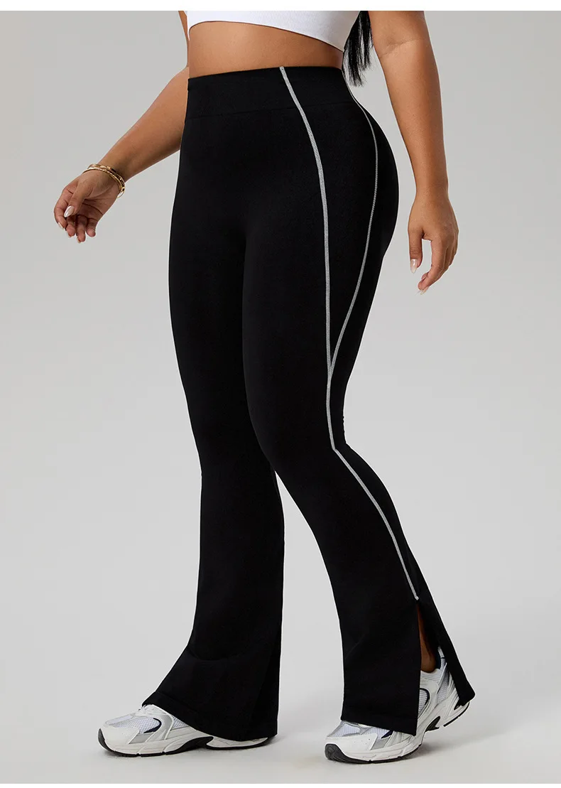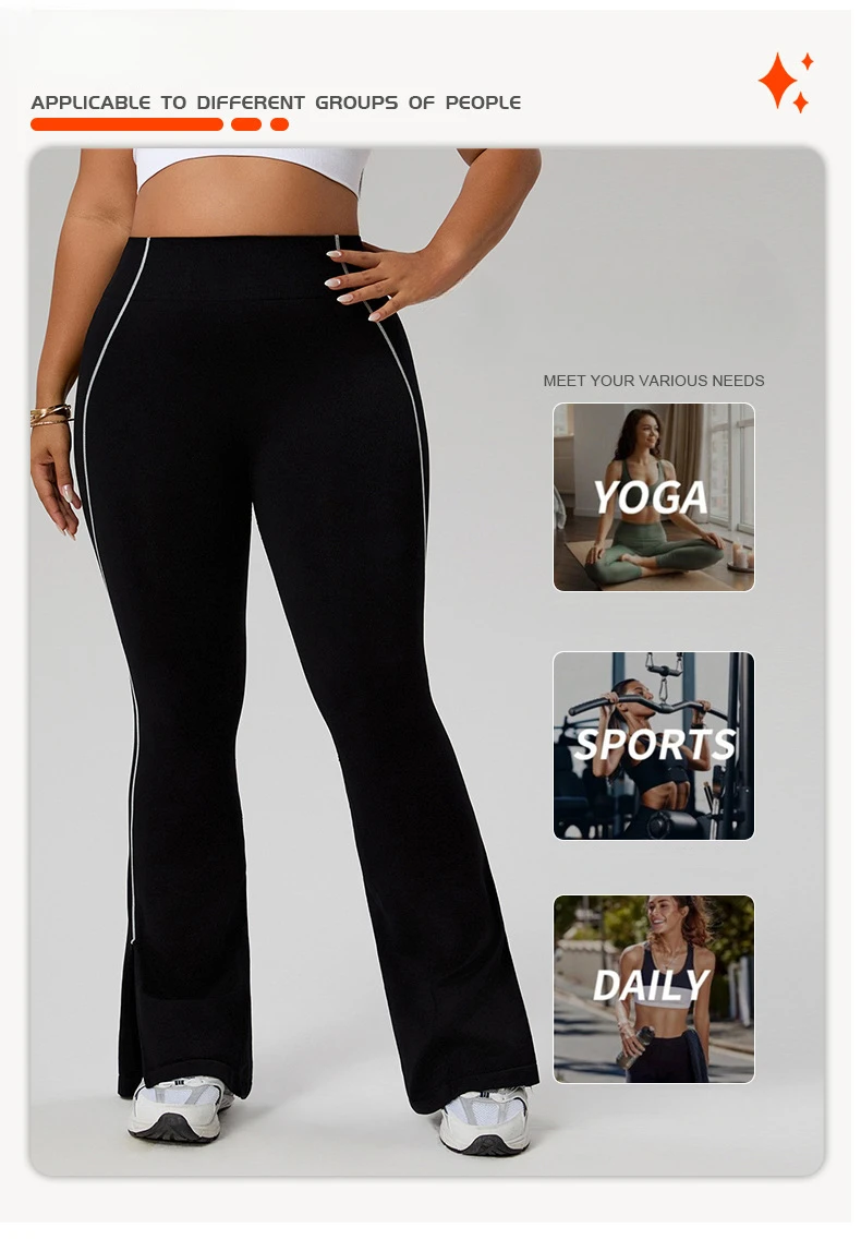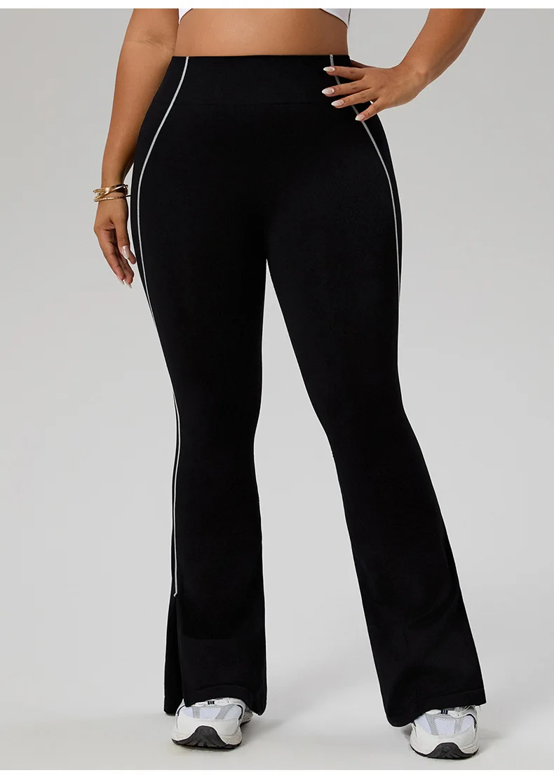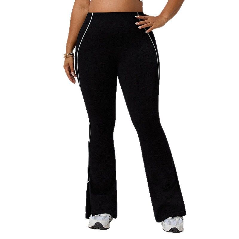 Women's Plus Size High Waist Color Block Yoga Pants, Tummy Control Hip Lifting Flared Pants, Casual Workout Wear
