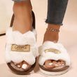 Women's Plush Fuzzy Slippers Home Fur Open-Toe Slides Autumn Winter Indoor Silent Comfort EVA Soft-Soled Bedroom Warm Flip Flops