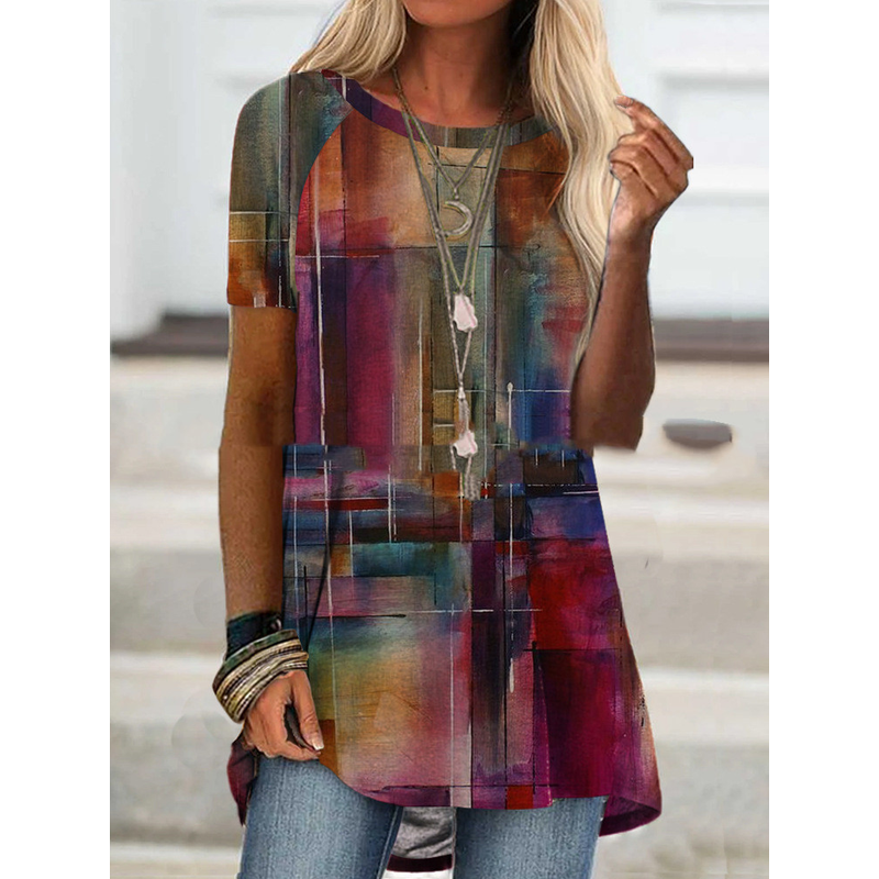 Women's Printed Loose Round Neck Long Sleeve T-shirt 2 Style 2XL