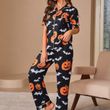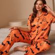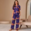 Women's Printed Pajamas Suit Fashionable Short-sleeved Shirt And Trousers Black S