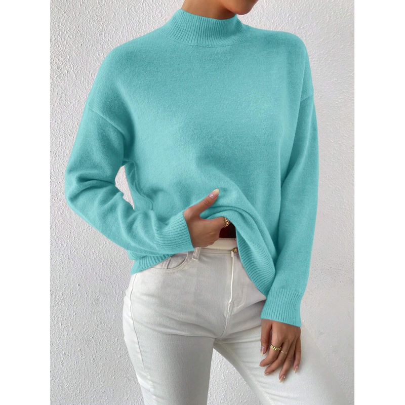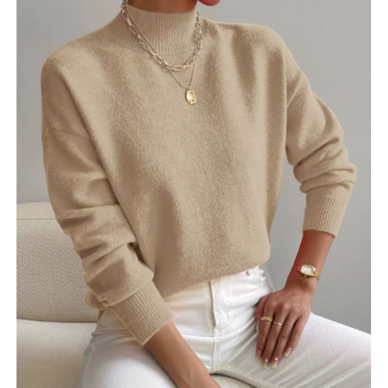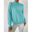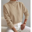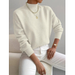 Women's Pullover Sweater Casual Solid Color Mid-high Neck Long-sleeved Knitted Tops Clothing Milky white S