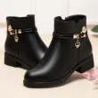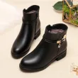 Women's Rhinestone Leather Boots Autumn Winter Warm Cotton Shoes Low Heel Round Head Side Zip Footwear Botas Para Mujeres