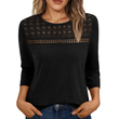 Women's Round Neck Top Lace Hollow Breathable All-match Long Sleeve Black L
